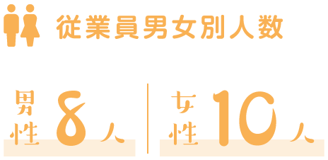 | 従業員数 | [正社員]4名 [アルバイト・パート]8名 |