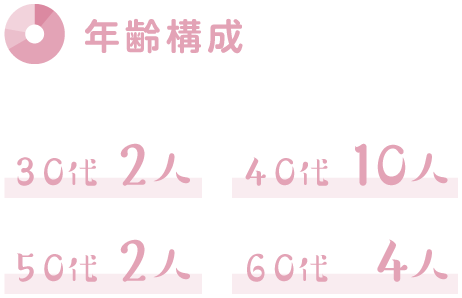 40代が一番多いですが、50代以上の方もバリバリ活躍しています!